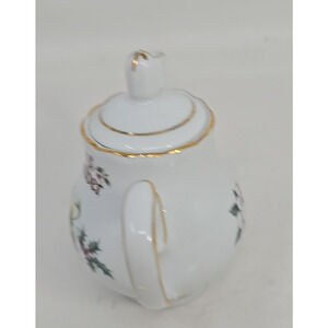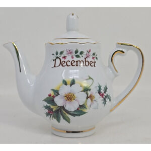 Golden Crown E& R Germany 3 1/2 in Mini Birthday Teapot White Floral December