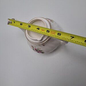 Elegant teapot featuring a beautiful pink rose design with gold trim, ideal for tea enthusiasts or collectors. Made from fine bone china.