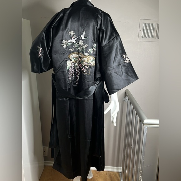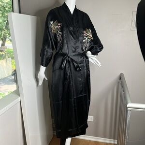 This is a beautiful Golden Dragon Unisex XL Black Poly Embroidered Kimono Robe Front Tie - New never worn.