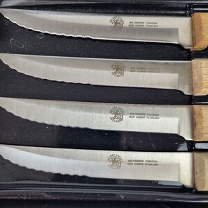 Beautiful 4-piece steak knife set made of molybdenum vanadium high carbon stainless steel with nice wooden handles!