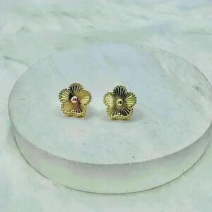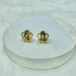 These Golden Flower Stud Earrings feature an elegant design and are crafted in yellow gold.