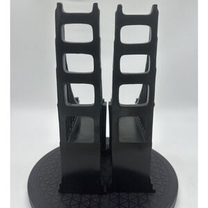 The Golden Gate Bridge Hard Plastic Bookends are a medium-sized decorative collectible featuring a unique bridge shape design. Made of black resin, these original bookends are perfect for adult book enthusiasts who appreciate the iconic Golden Gate Bridge. Suitable for all occasions, these bookends are a great addition to any city-themed collection or as a stylish accent piece for bookshelf display.