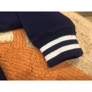 Very cute Golden Gate National Parks toddler boys navy blue retro Alcatraz snap button jacket. Logo & front pockets. Color is a dark navy blue. Size 4T. Very good gently used for a brief time condition. Please note jacket has some minor normal minor signs of wash in some areas with the fabric. No stains, tears, snags, etc. $40 Alcatraz jacket purchased at the Alcatraz Museum. (#353)