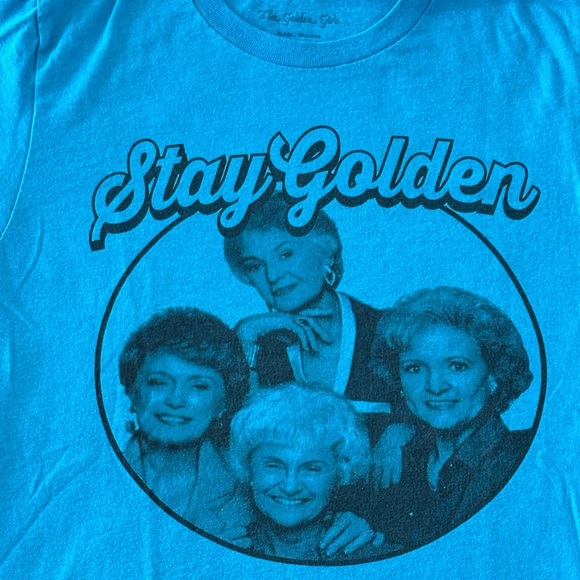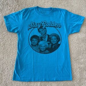 Blue graphic t-shirt featuring 'Stay Golden' text and iconic Golden Girls characters.