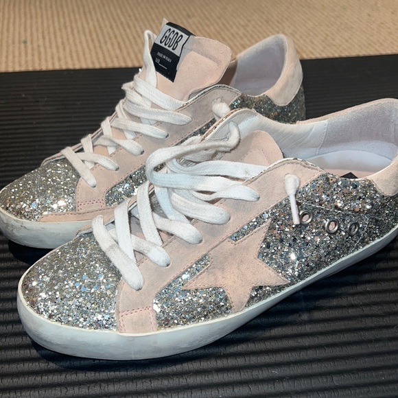 Worn 4 times. Great shape. Silver sparkle and light pink detail