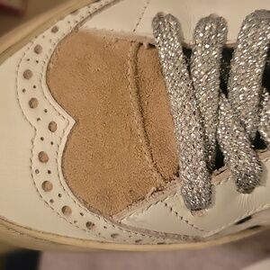 tennis shoes, only used 1 time, excellent used condition, removable footbed , barely signs of wear on footbed in good condition , the front area shows some thread ,but that's how I received them. they also have a distressed, worn look.