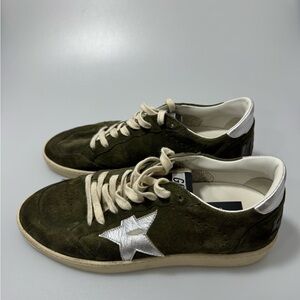 Golden Goose Ball Star Distressed Leather Trimmed Suede Sneakers Green Men’s EU 41/US 8 $565.