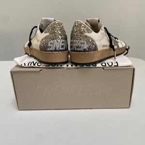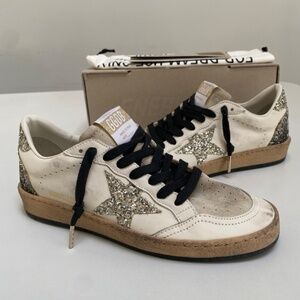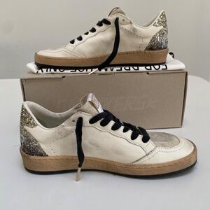 Golden Goose Ball Star Sneaker Off-White Leather/Seedpearl/Platinum Gradient Glitter/Black sz 38 New in Box