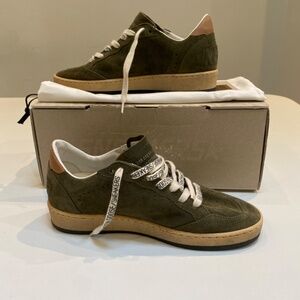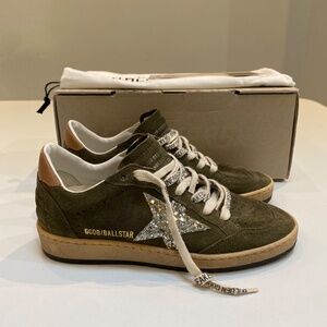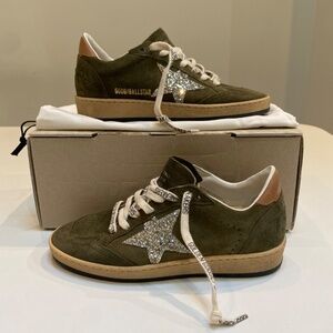 Golden Goose Ball Star Sneaker Olive Green Suede/Silver Glitter sz 35 New in Box