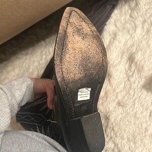 Stylish ankle boots with striking starburst design. Black leather with white stitching. Perfect for a bold look. Fit size 7.5-8 best. Send offers