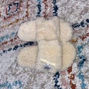Cozy cream sandals with a silver star accent. Perfect for casual wear.
