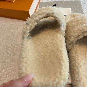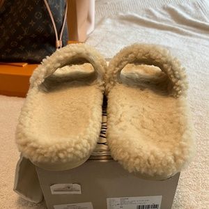 Golden Goose Cozy shearling sandals. Features cream color with silver accent. Perfect for casual wear. Worn a handful of times but still in excellent condition.