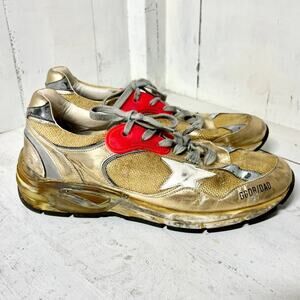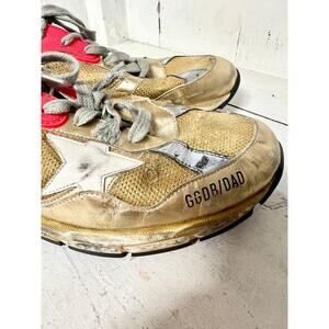 Golden Goose Dad Net Distressed Low Top Running Sneakers Gold/White Mens Size 12