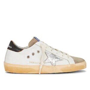 Step into effortless style with these Golden Goose Superstar sneakers, brand new and never worn. A chic mix of canvas, suede, and leather in classic white, silver, black, and grey makes them the perfect blend of casual luxury and everyday versatility.