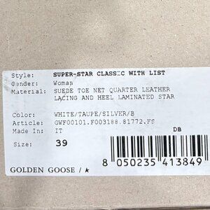 Golden Goose Deluxe Brand Superstar Sneaker size 39, NIB