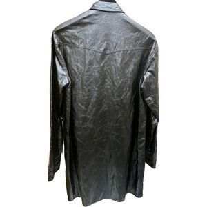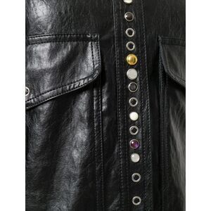 Studded oversize shirt. Made of faux leather. Snap fastening. Long sleeves. Snap fastening cuffs. Side slits. 2 snap fastening flap pockets. 50% Polyurethane 30% Rayon 15% Polyester 3% Cotton 2% Metal
