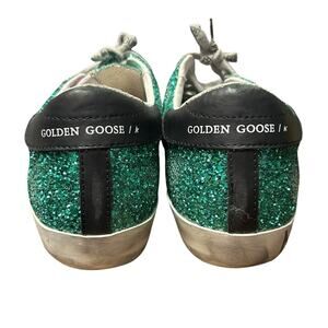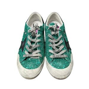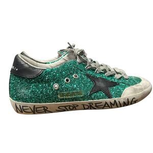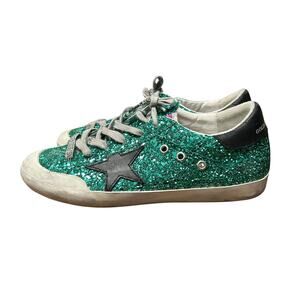 Golden Goose Green Glitter Black Star Low Top Lace Up Sneakers Womens 39 / 9