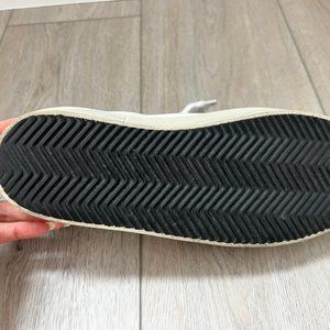 white sneakers with a bit of a platform, zebra hair cap toe, and glitter stars