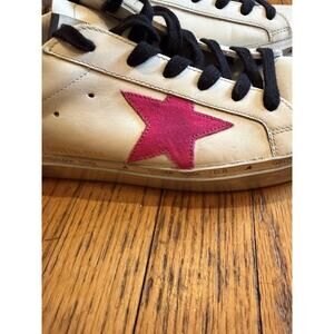 Golden Goose Hi Star Shoes Womens Size 10 White Pink Leopard Leather Italy