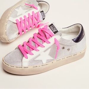 Golden Goose Hi Star sneakers in glitter with checkered pattern and white star