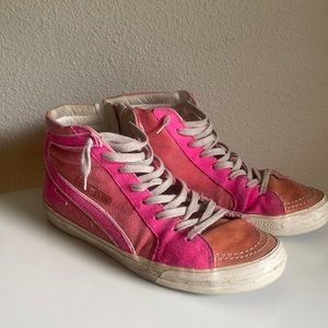 Selling my beloved neon pink slides. The best GG high tops — this is my let it go price so no offers please. Bought from Shopbop.