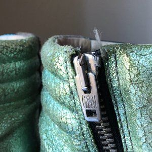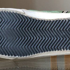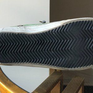 The best shoes! Golden Goose hightop sneakers size 41. Blue and Green. Super comfortable. Pictures show the wear of the shoes. Mainly on heal.