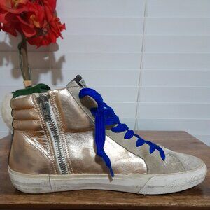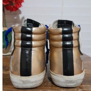 Golden Goose Laminated Slide Sneakers Sz 35 (US 5) Preowned Gold White Blue