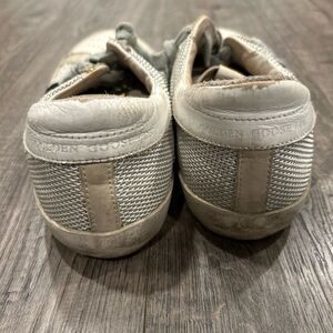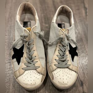Step out in style with these Golden Goose men's sneakers. Featuring a chic beige and black design, these shoes offer both comfort and fashion-forward appeal. Perfect for any casual outing.