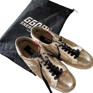 Golden Goose Metallic Gold Sneakers In Original Zipper Bag 40