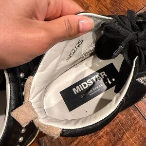 Golden Goose Mid Star Black Leather with Pearl Detail and Pink Soles, size 39