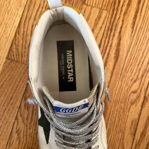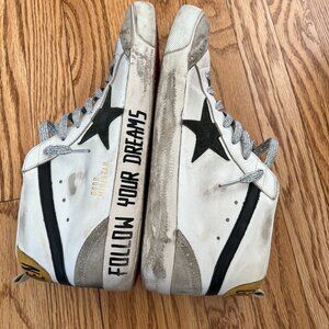 Glitter laces, blue star, worn but in good condition. Size 11 which is a 42 in Europe. There are no stains on them, they look distressed to begin with. Pet free home. Please ask questions.