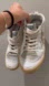 Stylish Golden Goose sneakers. White leather with tan accents. Iconic star design.