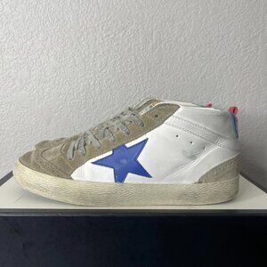 Golden Goose Mid Star White Blue Leather Sneaker Men's 41 EU/8 US Made In Italy