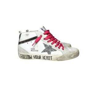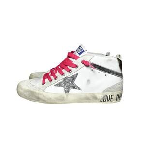 Golden Goose Mid Star White Ice Leather Glitter Wing Tip Sneakers 38 In Box