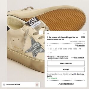 Golden Goose NEW Hi Star Sneakers Swarovski rhinestone Star navy white gray 36