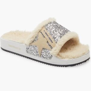 Golden Goose Poolstar Genuine Shearling & Glitter Slide Sandals size 36