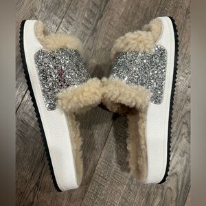 Brand new never worn comes with original dust bag size 6 women’s Poolstar Shearling Glitter Pool Sandals