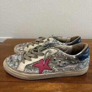 Golden Goose Shoes Womens US 5 Size 35 Silver Sequin Pink Star Low Top Distressed Italy