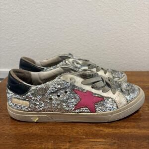 Golden Goose Shoes US 5 Size 35 Low Top Distressed Sequin Pink Star May Italy