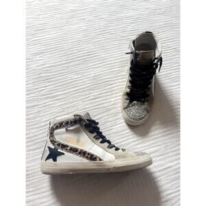Golden Goose Slide High Top Glitter Toe Leather Quarter and Star Horsy Wave
