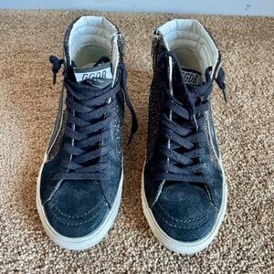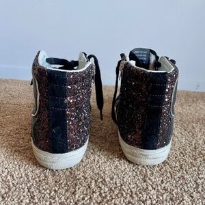 Golden Goose Slide High Top Sneakers, Brown Glitter with Black Star - EU 36
