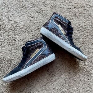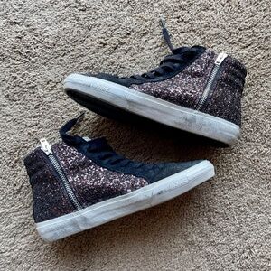 Brown glitter and black suede upper