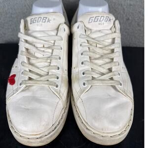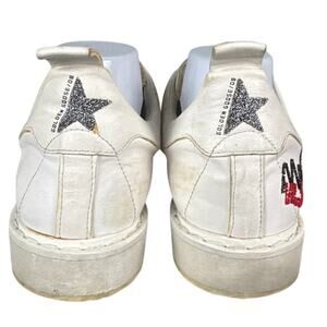 Authentic Golden Goose Super Start Sneakers with Swarovski Crystals on the right shoe. The left shoe does not have crystals. These are a limited-edition shoe, handcrafted in Italy, made from Nappa Leather, with a Golden Goose pre-scuffed aesthetic. The beading is missing in three small areas (see photo), otherwise perfect condition. These have been authenticated by Legit Grails (certificate will come with shoes).