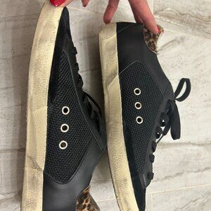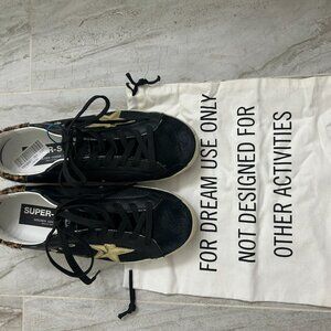 Golden Goose Superstar Black Leather, Mesh and Suede. Gold Star. Leopard Heel. Black Laces. EU 40 US 9.5-10