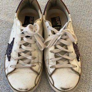 Golden Goose Superstar Distressed white glitter/leather sneaker
