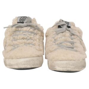 Golden Goose Superstar Sabot Distressed Glittered Shearling Slip-On Sneakers in White Wool