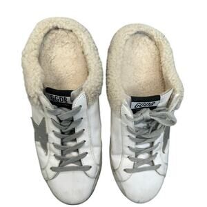 Golden Goose Superstar Sabot Shearling Slide Sneakers White Silver Authentic