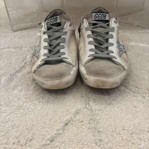 Golden Goose Superstar with silver sequins for stars. Shoes are white and tan size 36. The shoes were worn just a few times.
