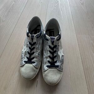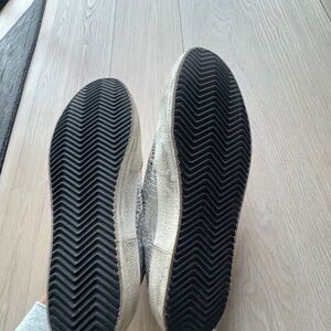 Only worn a few times, these are in perfect condition. The main shoe is silver and the back is pale pink and baby blue. I wear an 8.5 or 9 - these are size 40.