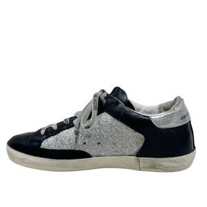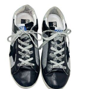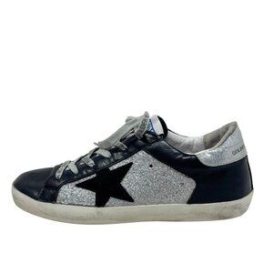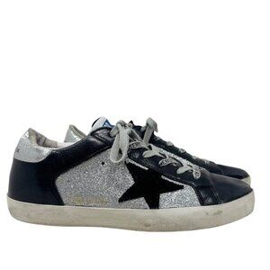 Golden Goose Superstar Sneakers Women Size 37 Silver Glitter Black Star Leather